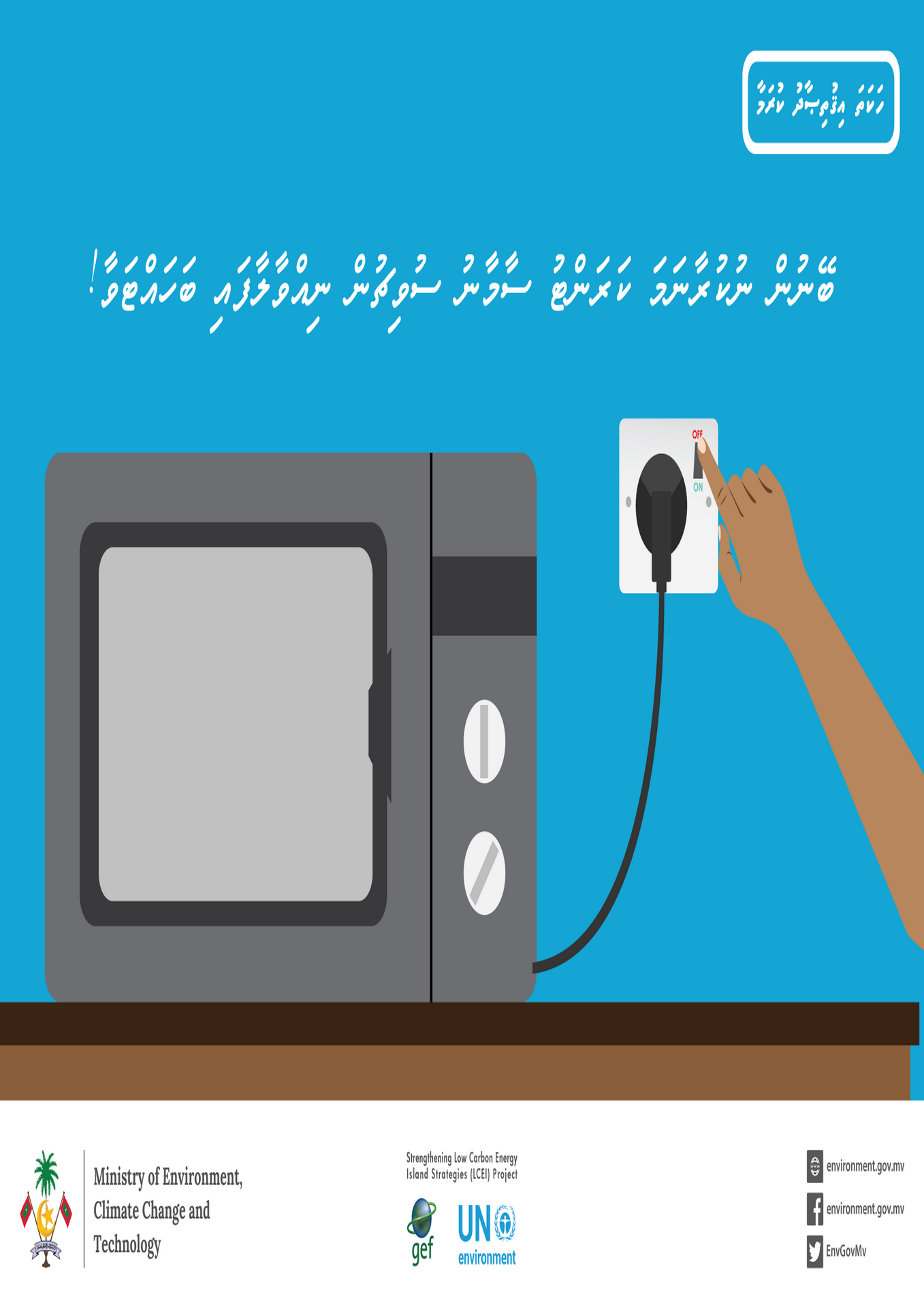 ހޭލުންތެރިކުރުވުމަށް ޕޯސްޓަރ: ބޭނުން ނުކުރާނަމަ ކަރަންޓު ސާމާނު ސުވިޗުން ނިއްވާލާފައި ބަހައްޓަވާ!13 ޖުލައި 2023 13 ޖުލައި 2023 އެޓޭޗްމެންޓް (1) (294.89 KB)