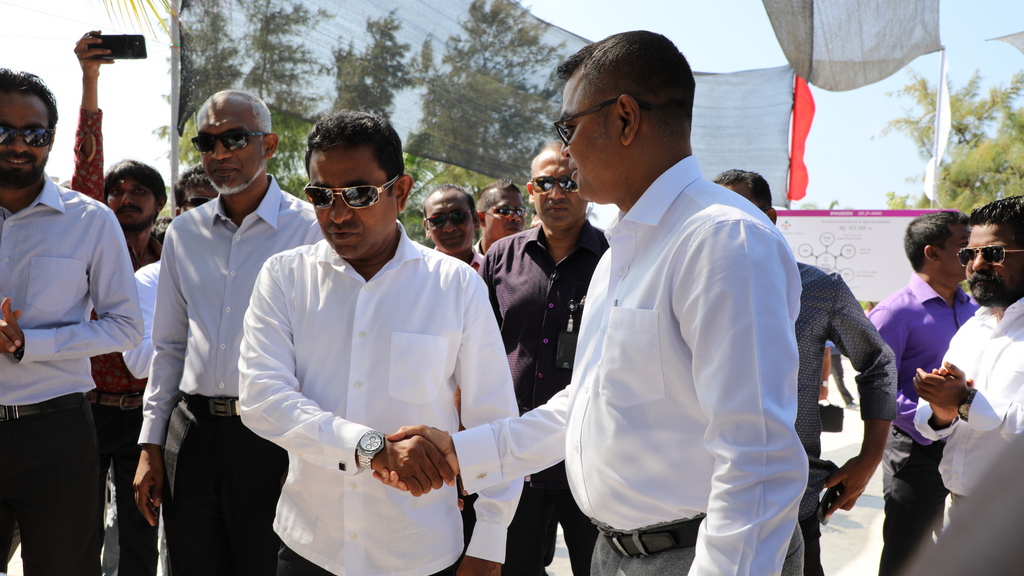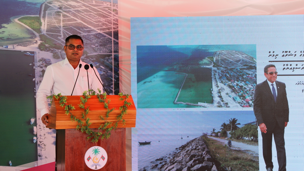 ދިވެހިރާއްޖޭގެ ރައީސުލްޖުމްހޫރިއްޔާ ޢަބްދުﷲ ޔާމީން ޢަބްދުލް ޤައްޔޫމް ބ. ތުޅާދޫގައި ގޮނޑުދޮށް ހިމާޔަތްކުރުމުގެ މަޝްރޫޢު ނިންމުމުގެ ރަސްމިއްޔާތު އިފްތިތާޙްކޮށްދެއްވައިފިއެވެ.