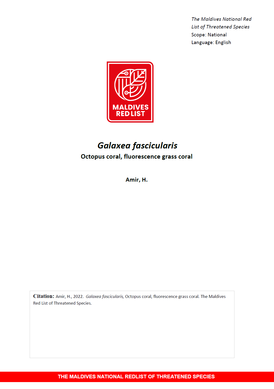 Maldives Red List: Galaxea Fascicularis