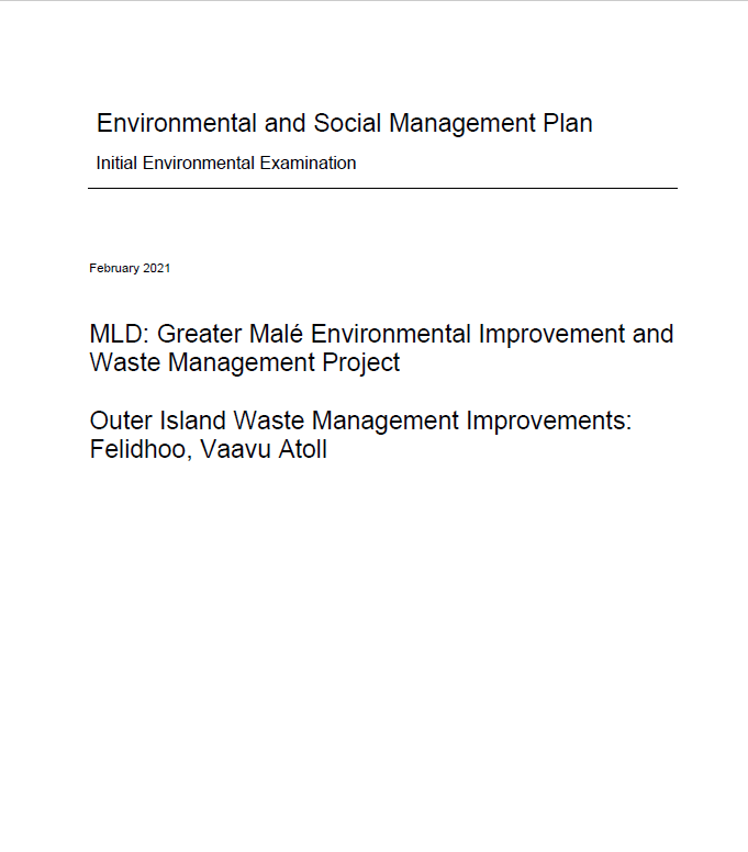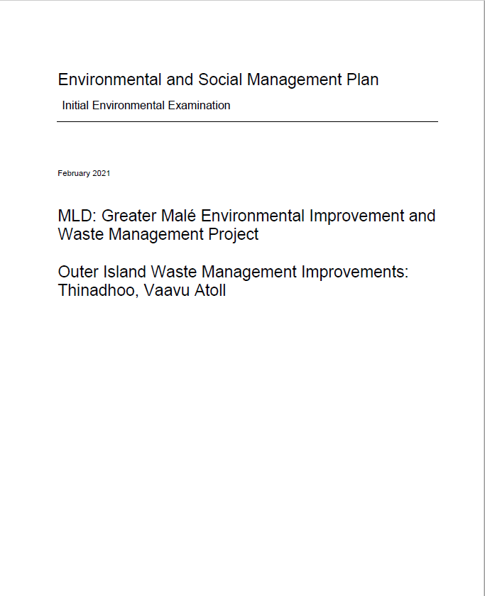DRAFT: Maldives Waste Management Policy and Formulation of a National Waste Management Strategy – For Public Commenting 02 Mar 2023 02 Mar 2023