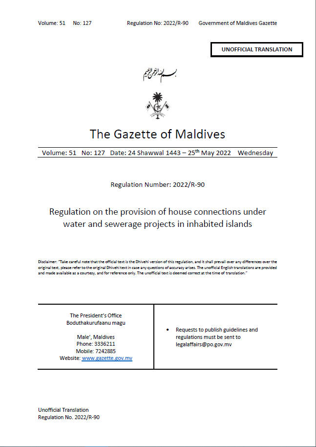 Regulation on the provision of house connections under water and sewerage projects in inhabited islands