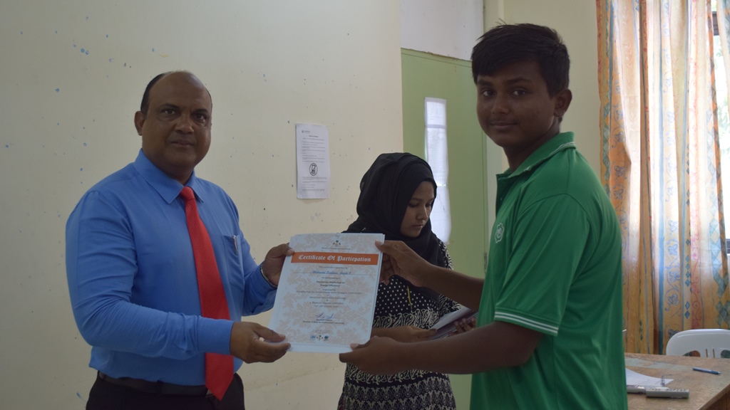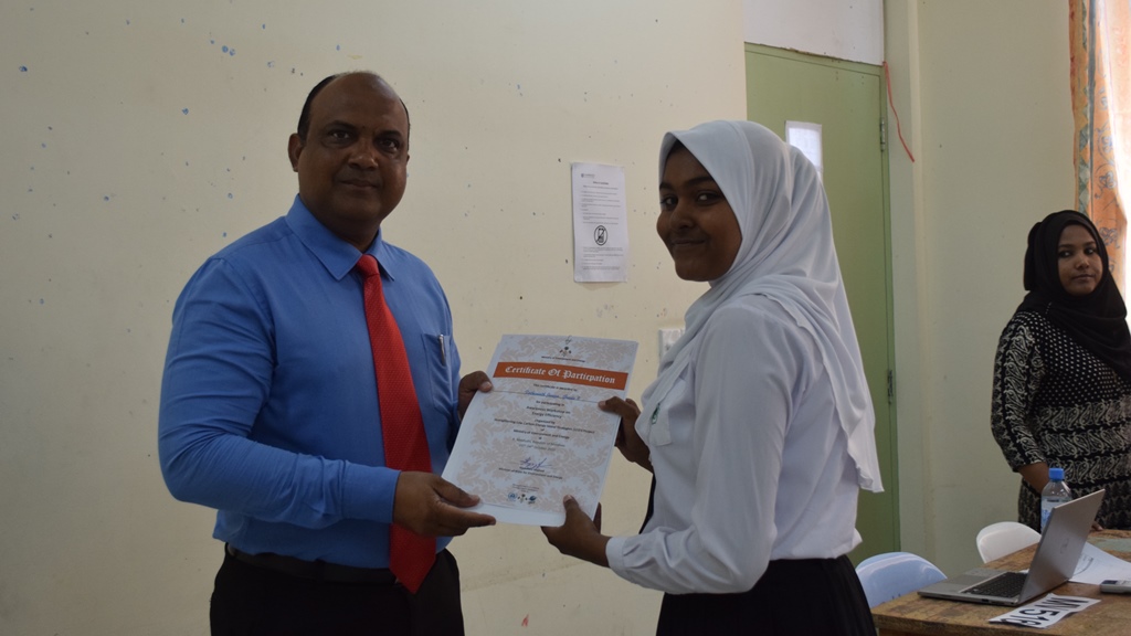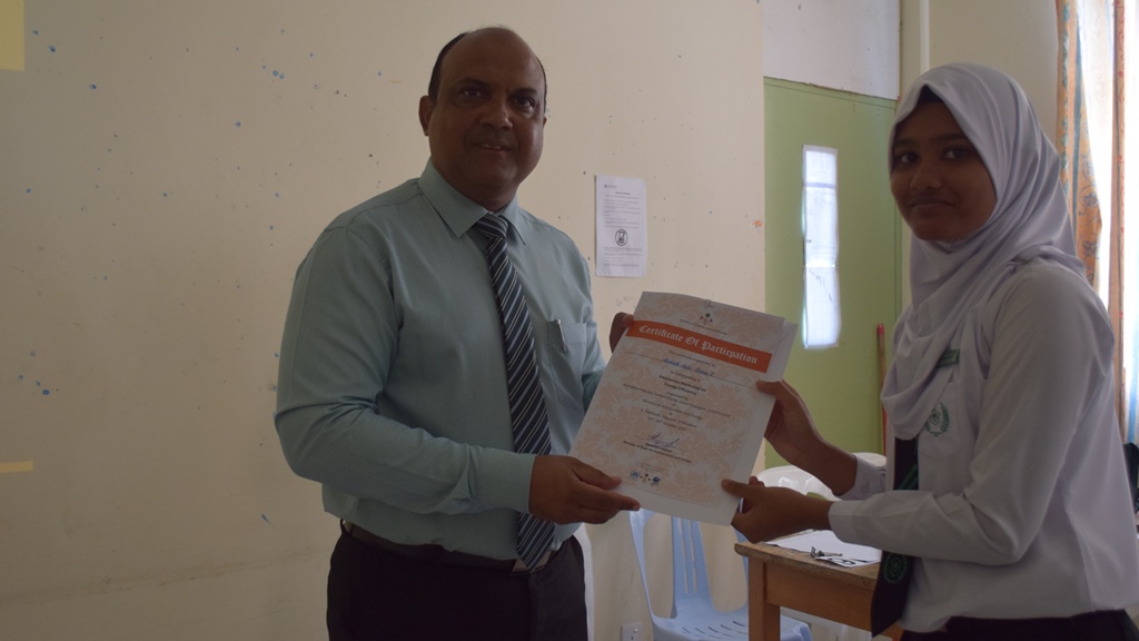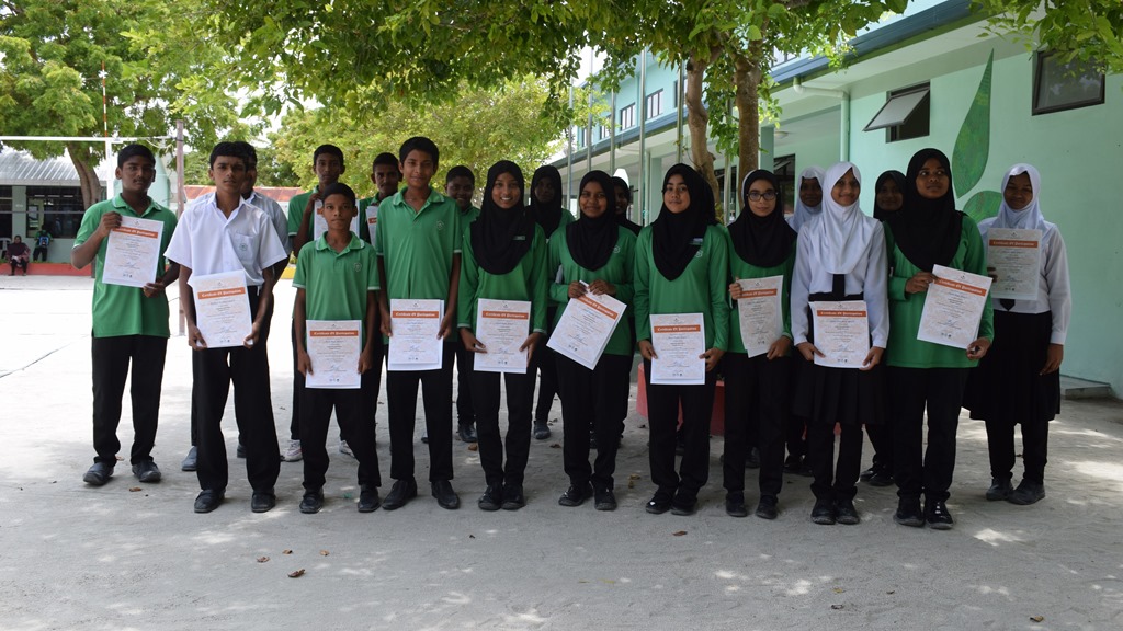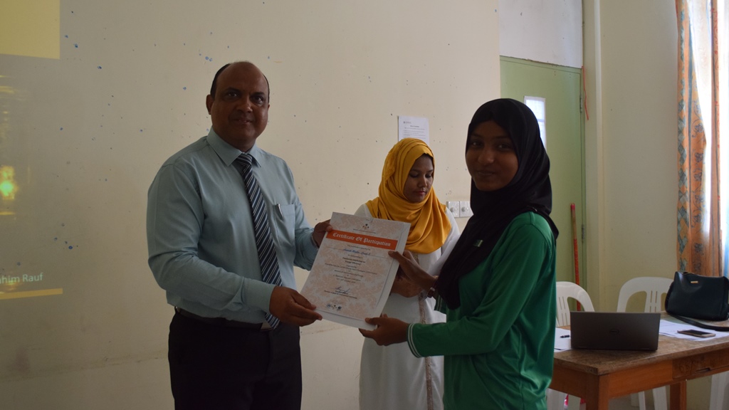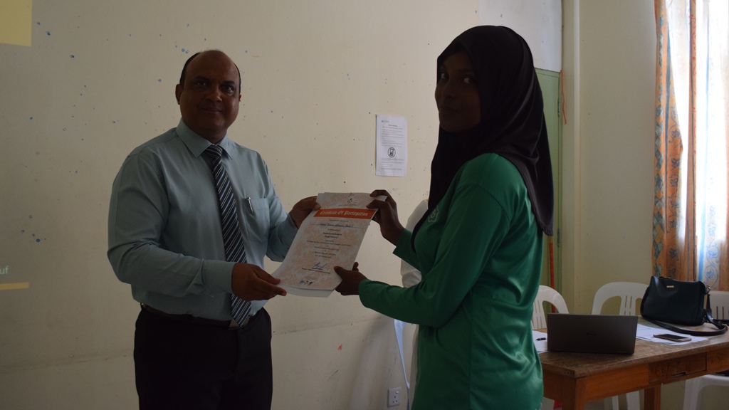 Certificates were awarded to the participants by Maafushi School Principal, Mr. Abdul Nasir Mohamed.