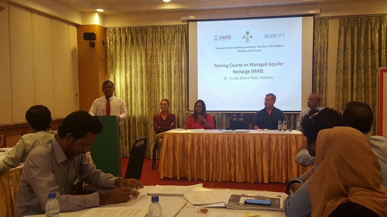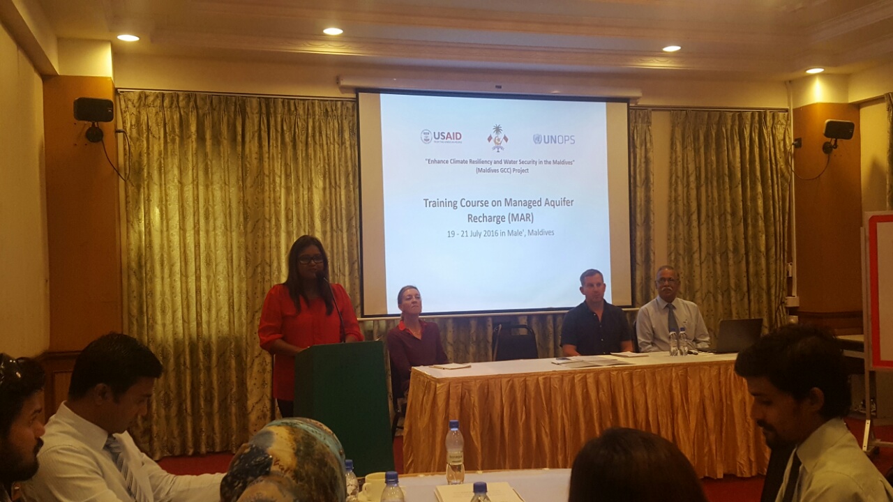Under the Maldives GCC project “Enhance Climate Resiliency and Water Security in the Maldives”, a Training Course on Managed Aquifer Recharge (MAR) was held from 19-21 July 2016. The training is jointly organized by Ministry of Environment and Energy and UNOPS, under the said donor funded project from the USAID.