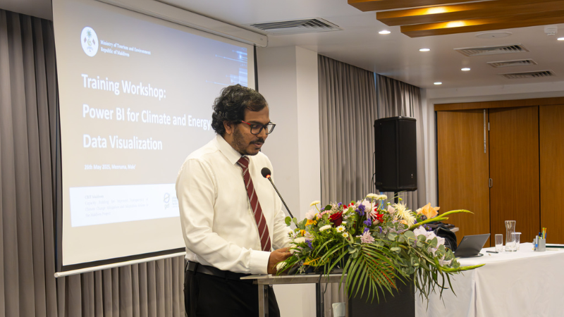 The Ministry of Tourism and Environment successfully concluded a one-day training on Power BI for Climate and Energy Data Visualization, as part of its ongoing efforts to enhance climate data transparency and analytical capabilities in the Maldives. The training was conducted under the Capacity Strengthening for Improved Transparency of Climate Change Mitigation and Adaptation Actions in the Maldives (CBIT Maldives) Project, funded by the Global Environment Facility (GEF) and supported by the United Nations Environment Programme (UNEP).