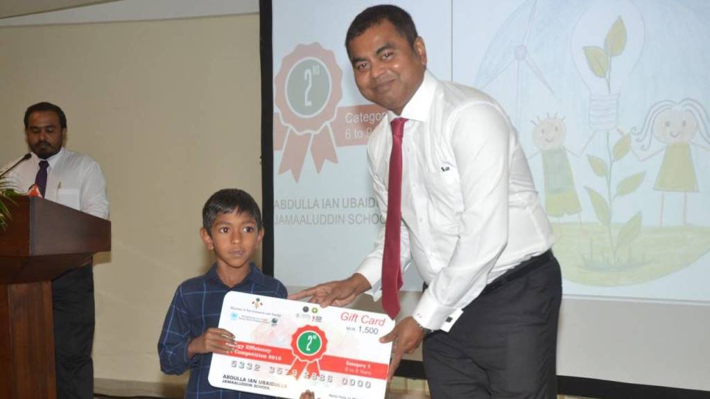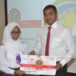 A total of 8 students received awards at the ceremony. Mariyam Shaura Samir, (Thinadhoo School) was awarded the first place from category 1. Abdulla Ian Abdulla, (Jamaaluddin School) and Alya Ubaidulla, (Jamaaluddin School) were awarded the second and third place from the category. In Category 2, Naaih Ilyas Ahmed, (Aminiyya School) received the first place, while, Mariyam Layaan Waheed, (Thinadhoo School) and Eshal Ahmed Naseer, (Iskandhar School) received 2nd and 3rd place respectively. Abaan Mohamed Zahir, (Villa High International School) and Suma Khalid Mohamed was awarded the 1st and 2nd place from category 4, respectively.