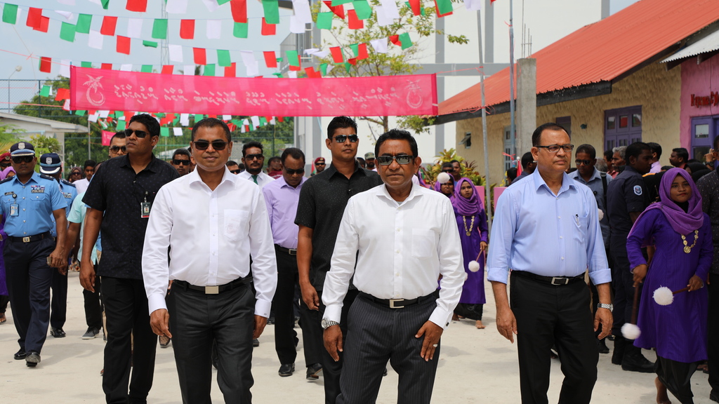 President His Excellency Abdulla Yaameen Abdul Gayyoom inaugurated the Sewerage Facilities in Raa atoll Maduvvari island at a ceremony held at Maduvvari this morning. The Sewerage System in Maduvvari was established by Male’ Water and Sewerage Company (MWSC).