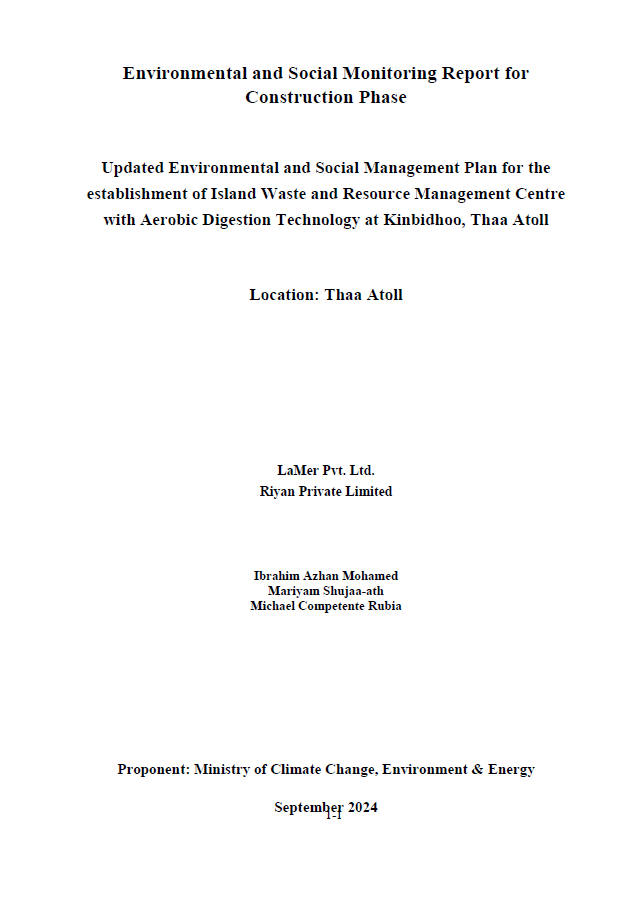 Environmental and Social Monitoring Report for Construction Phase of Th. Kinbidhoo Waste and Resource Management Centre project