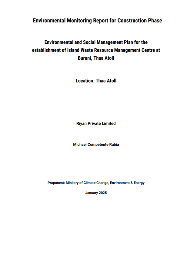 Environmental and Social Management Plan for the proposed establishment of Island Waste and Resource Management Centre at Th. Buruni