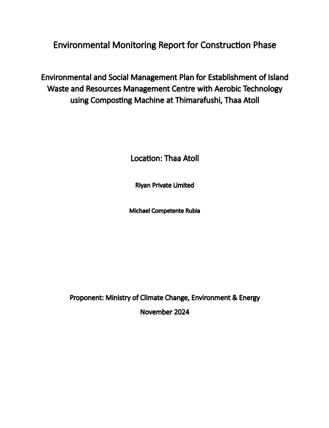 Environmental Monitoring Report for Construction Phase (Thaa Atoll)