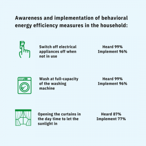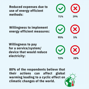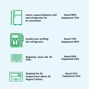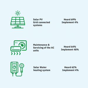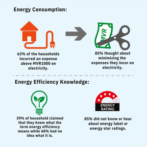 A study was conducted in 2017 by the Ministry to understand the extent of public awareness on energy efficiency, opinions on consumer choices, and behavior in energy consumption in selected households. A total of 1894 households participated in this study, representing a mix of housing types and geographical regions. The Questionnaire used in the study was designed to elicit quantifiable information on key research areas of the survey, specifically, Energy efficiency knowledge, Usage patterns, Energy efficiency measures taken in the household, Factors influencing purchase, Barriers to implementing energy efficiency measures, and Readiness to implement energy efficiency measures.